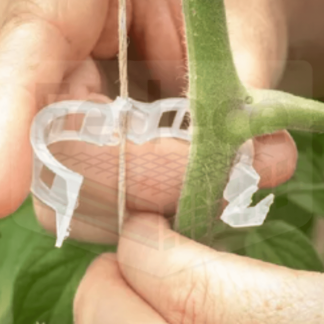 Esta diseñado para brindar un soporte seguro y prevenir el contacto de los frutos con el suelo. Su material con aditivos anti-UV y diseño que evita la acumulación de humedad protegen la planta y reducen el riesgo de enfermedades. Fácil de colocar y quitar, es ideal para su uso con rafia o jute.