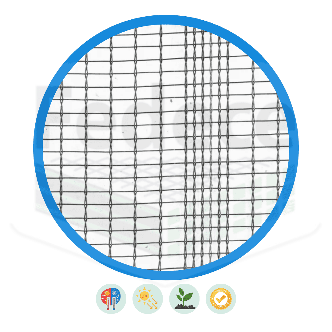 Malla con refuerzos utilizada para proteger cultivos contra los daños causados por el impacto del granizo. Colores: Cristal y negro. Nota: Se hacen lonas a medida de sus cultivos.