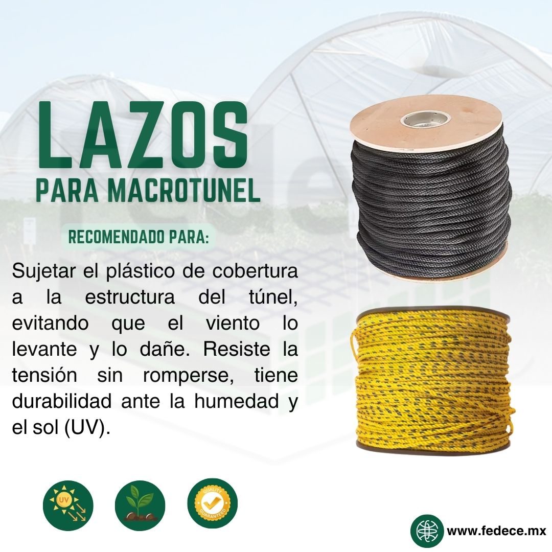 El mecate o lazo son ideales para amarre, cuentan con aditivo UV en algunos calibres. Se puede fabricar el calibre y colores que necesite.