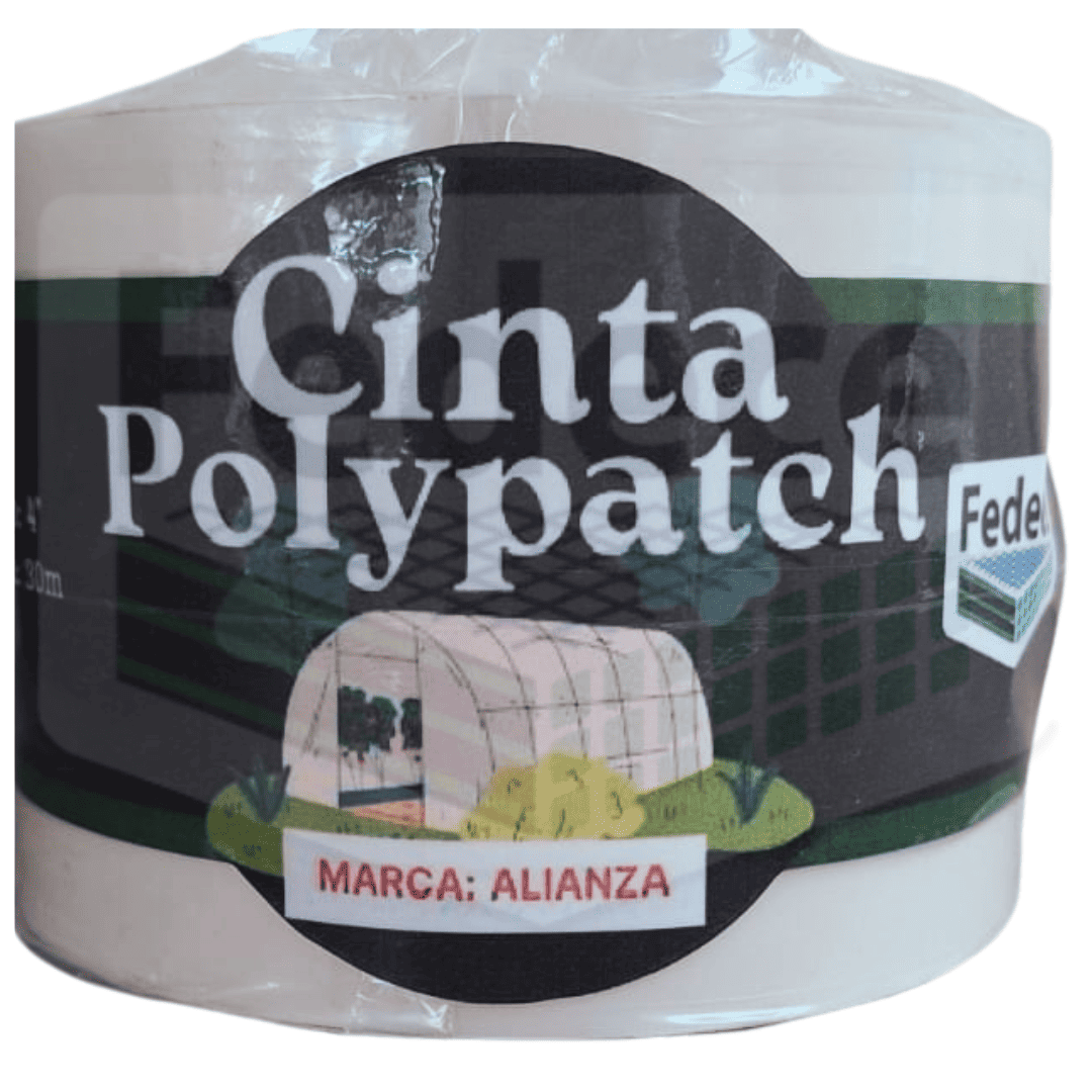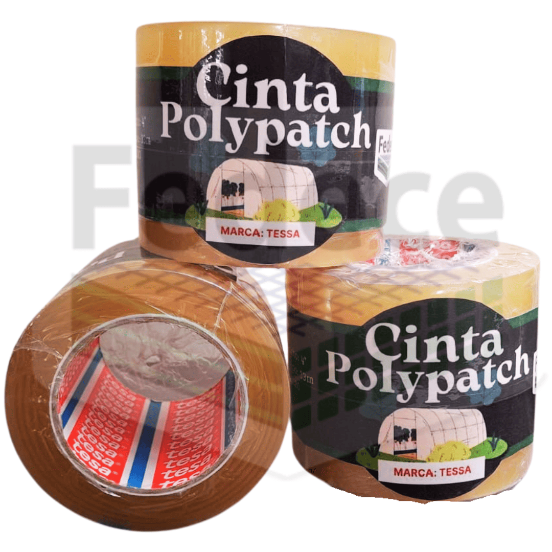 La cinta polypatch permite realizar una reparación total de las cubiertas plásticas de los invernaderos, se caracteriza por ser una cinta de polietileno de alta resistencia con adhesivo especial y de duración prolongada, cuenta con protección UV lo que la hace resistente a la degradación por radiación solar. Marcas: Tessa, Alianza y de importación.