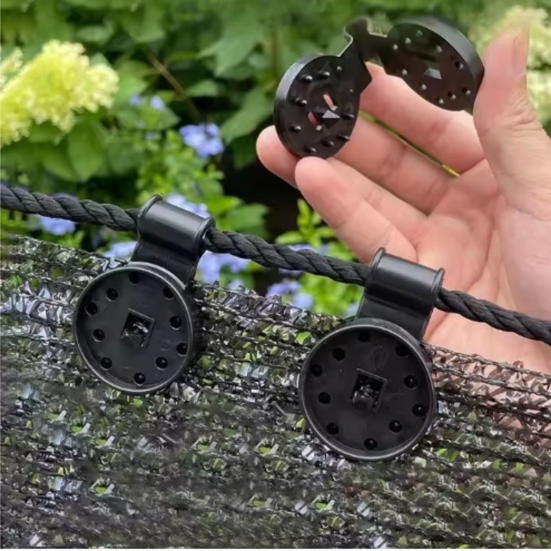 Los clips permiten añadir de forma rápida y fácil un punto de anclaje en cualquier tipo de malla residencial y de uso agrícola de tejido abierto, cuenta con aditivo anti-UV.